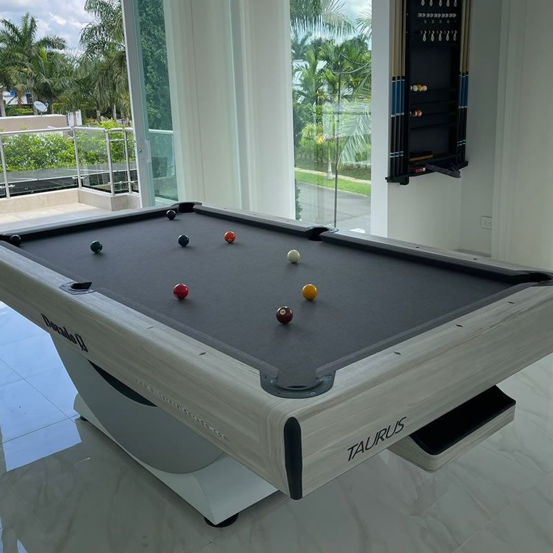Our 8 ft. TAURUS model is an exclusive Dorado model, manufactured according to specific quality characteristics that make these units unmistakable items of furniture for their design, elegance and technology. Its base serves as a pendulum and structure that guarantee the maximum stability of the table and an excellent performance when playing a game, available in pool or billiard mode..